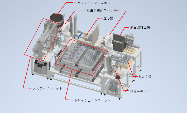 スマートロボティック・ラボアシスタント(Smart Robotic Lab Assistant)は、汎用品ではなく、お客様ごとのニーズに合わせて設計するシステムです。