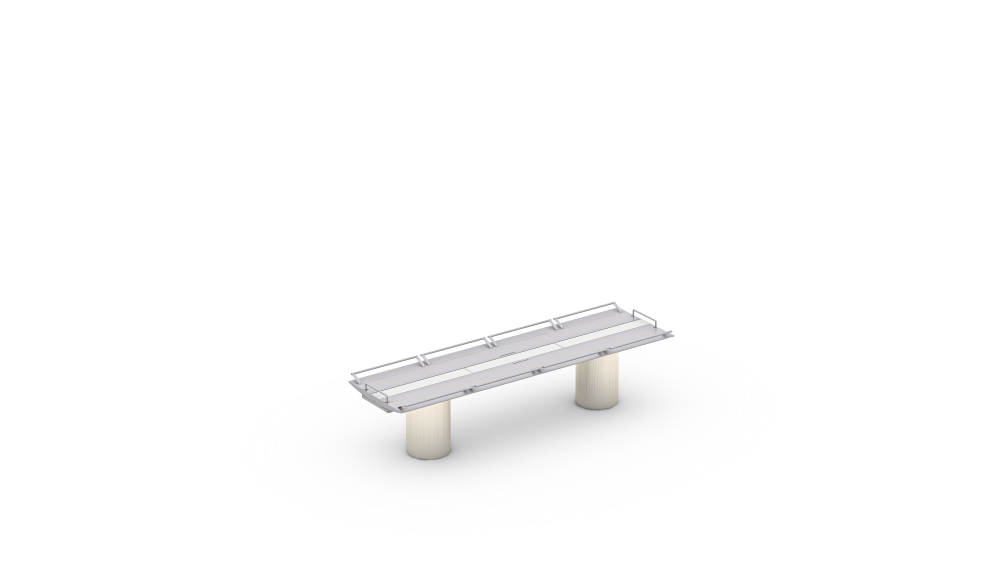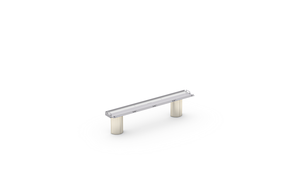 アルミ製脚部パーツと甲板を組み合わせた中央実験台