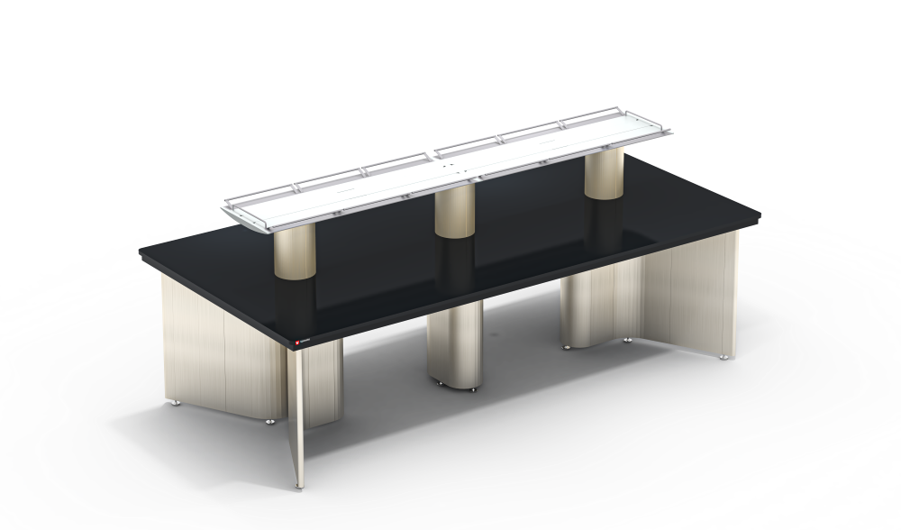 全方向から使用でき、共用スペースや様々な用途に活用できる中央実験台
