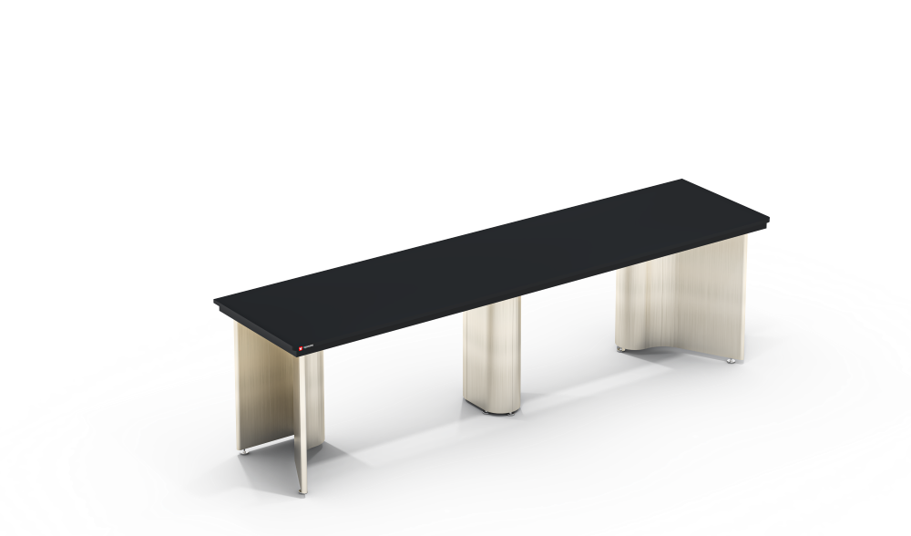 アルミ製脚部パーツと甲板を組み合わせた中央実験台