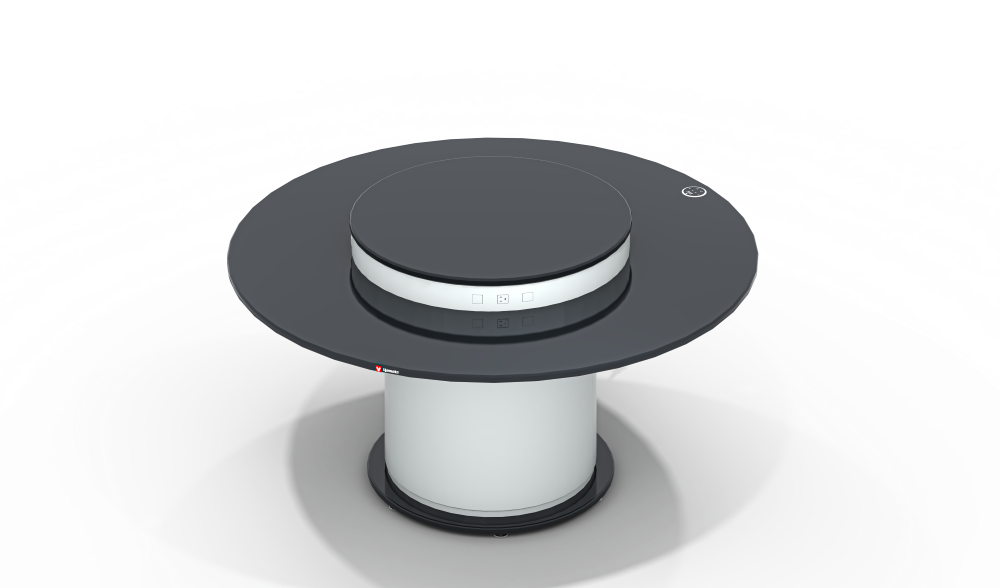 身体や作業姿勢に合わせて、手元のスイッチで天板の高さが調整可能な天板昇降式 円形実験台