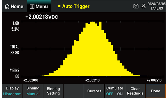 SDM4055Aには4つのモードが用意されています。デジタルモードはリアルタイムではっきりと表示するために使用され、ヒストグラムはデータの分布分析に使用され、トレンドグラフは動的データモードの観察とトレンド予測に使用されます。棒グラフは条件間で異なる条件の変化とパターンを比較し、迅速に分析するため、ユーザーはデータをより深く観察して分析することができます。
