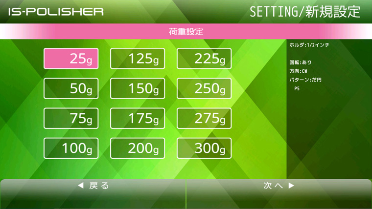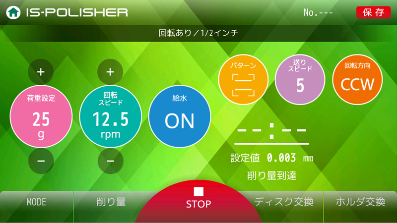 ISPP-3000は、画面に沿って研磨条件を選択することで熟練者の技術を再現できます。