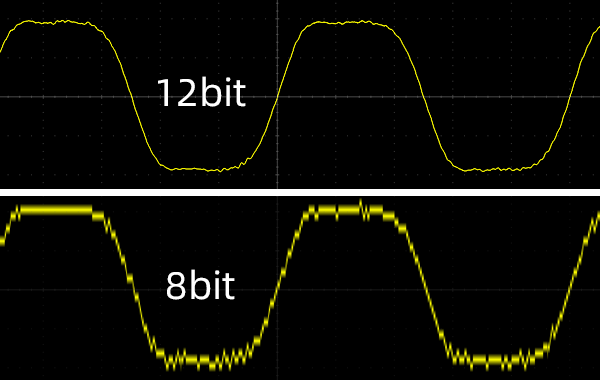 MO3シリーズは12ビット高分解能ADCを採用し、最大4096の量子化レベルを実現しています。これは従来の8ビットADCの16倍に相当します。これによりユーザーは波形の詳細をより完全かつ明確に観察することが可能となります。