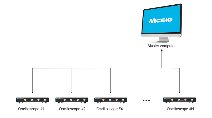 MOS4シンクロナイザーを介して最大16チャンネルのオシロスコープカスケード接続を実現し、多チャンネルオシロスコープの使用コストを効果的に削減します。