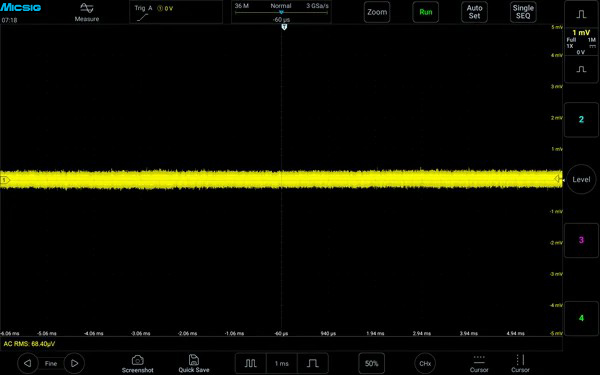 MO3シリーズは、500MHzの全帯域幅において80μVrms未満のベースラインノイズを維持し、回路デバッグや信号解析プロセスにおいて、微細でありながら重要な信号を正確に捕捉することを可能にします。