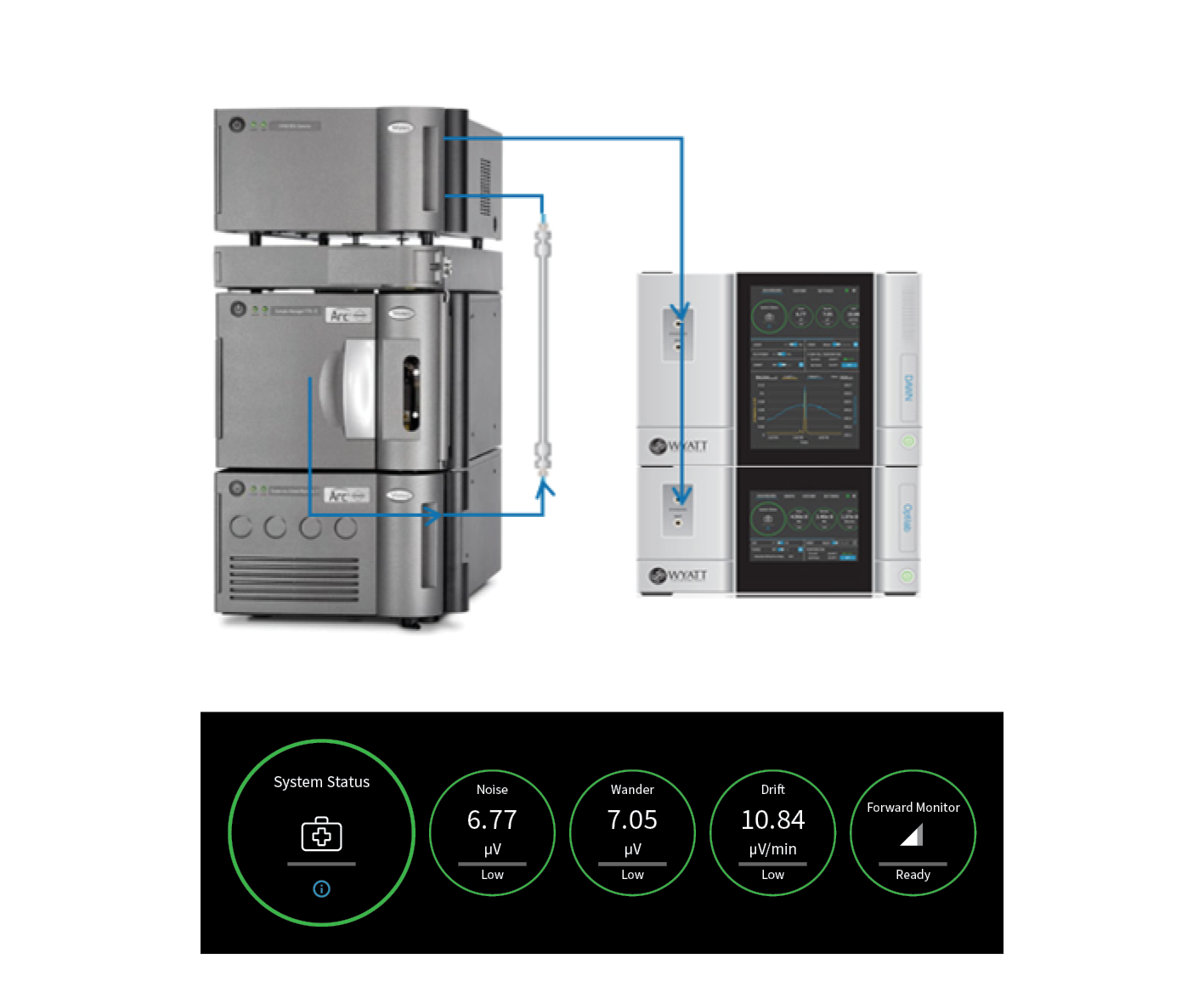 システム準備モニターで装置の平衡状態、検出器のノイズレベルをモニタリングし、測定に適した状態であるかを確認できます。問題があった場合には、システムの状態に応じて、緑・黄・赤と色が変化して警告を伝え、トラブルシューティングのためのガイダンスも提供されます。