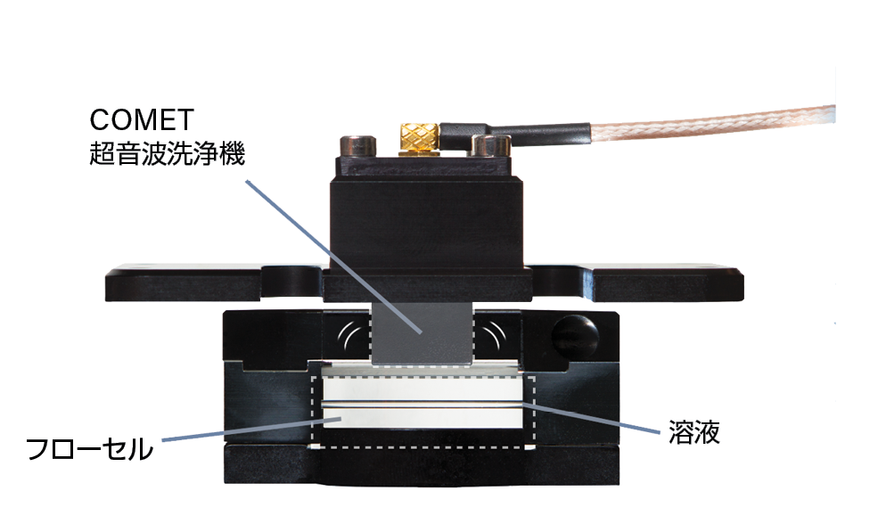内蔵の超音波洗浄機COMETが液体を攪拌してガラス表面の粒子をほぐし、フローセル内への汚れの付着を防ぎます。