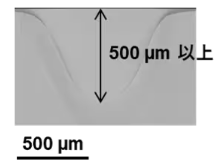 *1加速電圧6kV、マスクエッジからSiを100µm突出させて1時間加工した際の最大深さ