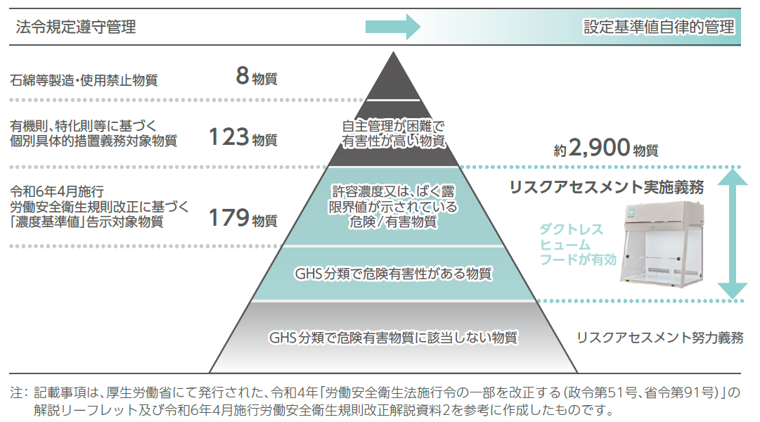 有機則除外対象や特化則第3類物質及び労働安全衛生規則改正に基づく「濃度基準値」告示対象179物質を含むリスクアセスメント実施義務対象物質を取り扱う作業者向けヒュームフードです。